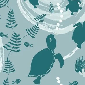 Available on 30 fabric types, 6 wallpaper bases, and a variety of made-to-order home décor products - all printed in the United States. Sleepy Turtles pattern designs are also available for licensing in any industry, with options for ready-to-use digital files or customised adaptations.