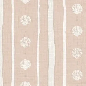 Coastal Seashell Stripe design is available in multiple colorways. This design beautifully suits nautical, calm moods and styles—choose neutral cream tones for a cozy statement wall, or soft, boho coastal blue shades for a subtle beach house vibe. Whether used on wallpaper, home décor, or fabric, Coastal Seashell Stripe will transform your space with its organic feel and summer living style. These relaxed, block print style, beachy patterns overlaid with subtle linen texture are ideal for home decorators, DIY sewists and makers, interior stylists, and brands looking to license seamless patterns for custom textiles, gift wrap, bedding, table linens, or stationery.
